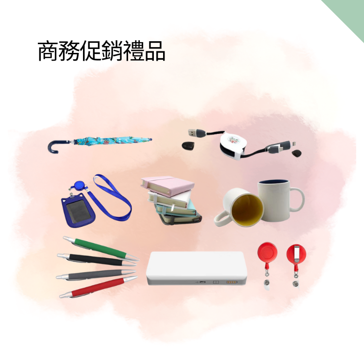 商務促銷禮品包括遮陽傘、充電線、筆記本、馬克杯、識別證套、原子筆、行動電源和識別夾,兼具實用與品牌宣傳效果,是展會和活動的最佳贈品選擇。